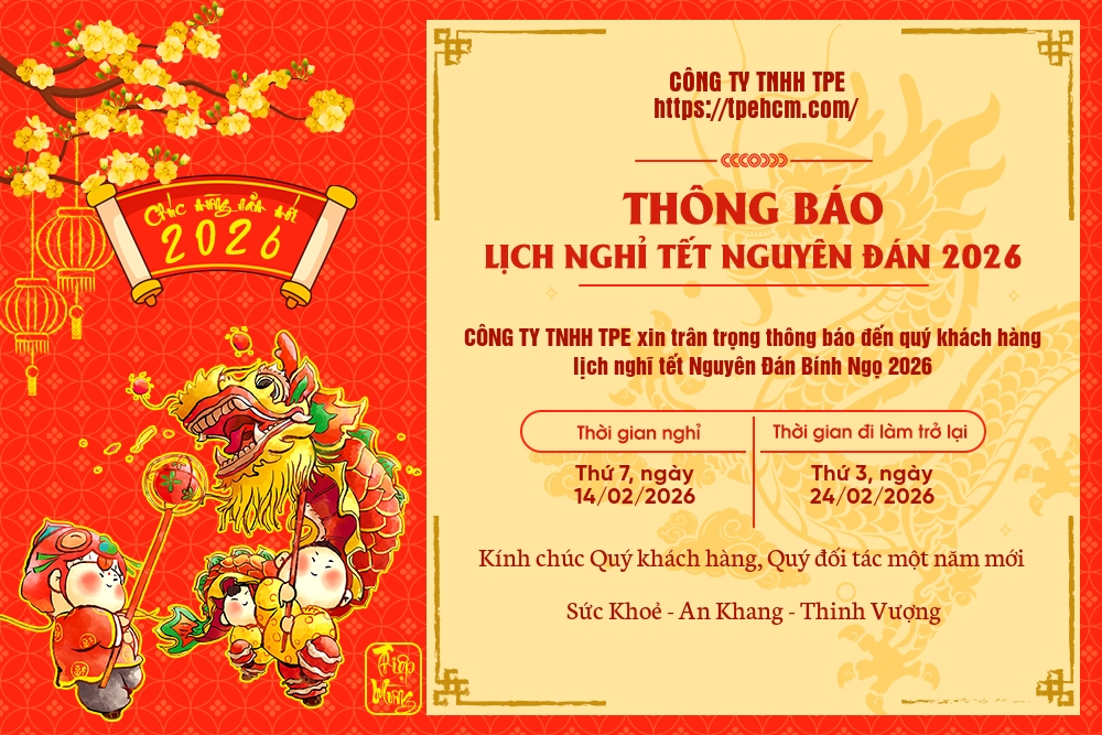 CÔNG TY TNHH TPE  THÔNG BÁO LỊCH NGHĨ TẾT NGUYÊN ĐÁN BÍNH NGỌ NĂM 2026 TỚI QUÝ KHÁCH HÀNG, QUÝ ĐỐI TÁC.