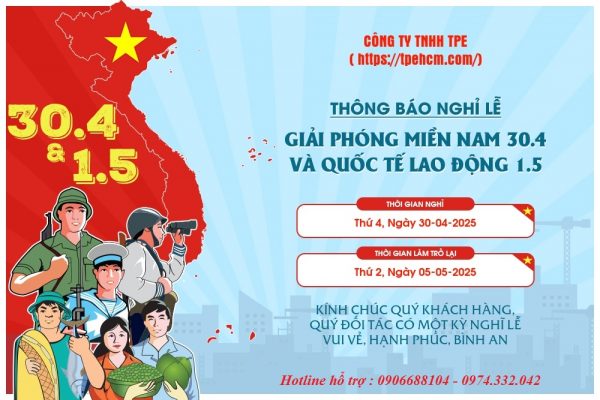 CÔNG TY TNHH TPE XIN TRÂN TRỌNG THÔNG BÁO LỊCH NGHỈ LỄ GIẢI PHÓNG MIỀN NAM 30-4 VÀ QUỐC TẾ LAO ĐỘNG 1-5 TỚI QUÝ KHÁCH HÀNG, QUÝ ĐỐI TÁC Trân Trọng Thông Báo ! ...
