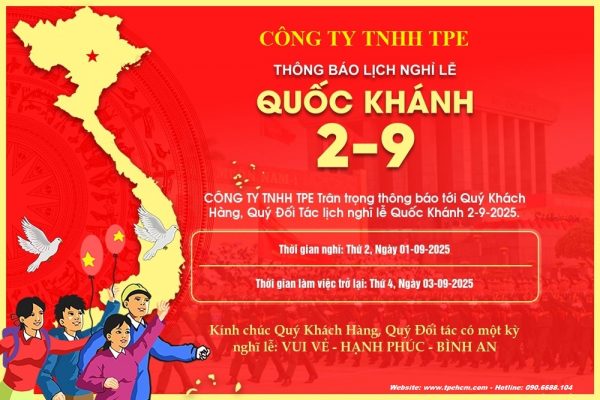 CÔNG TY TNHH TPE – Xin trân trọng thông báo tới quý Khách Hàng, quý Đối Tác lịch nghĩ lễ Quốc Khánh 2-9-2025 như sau: Trân Trọng Thông Báo ! ...